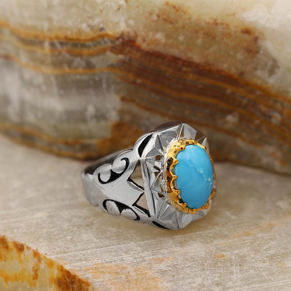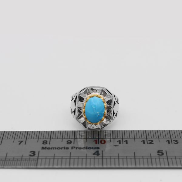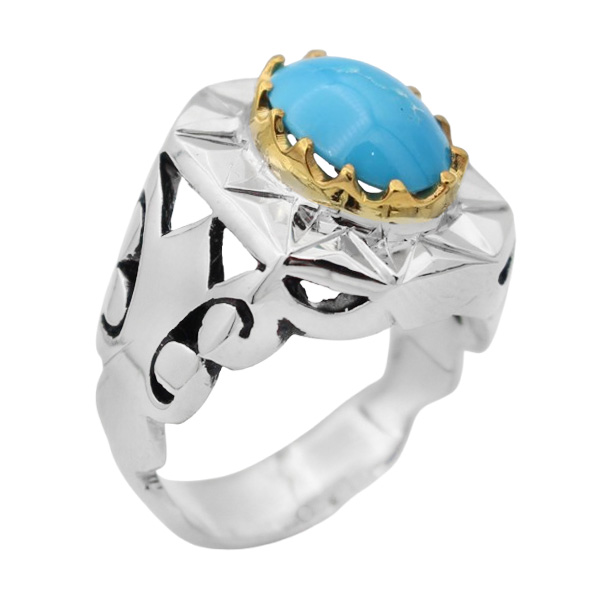 انگشتر فیروزه نیشابوری نقره مردانه دست ساز طرح فاتح