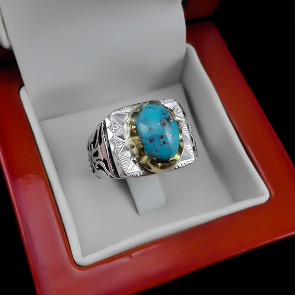 انگشتر نقره فیروزه نیشابوری دست ساز مردانه طرح گودرز