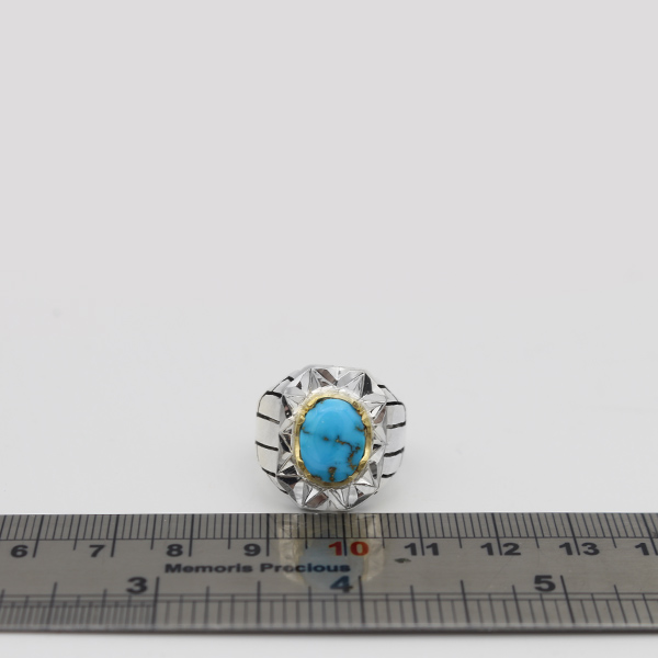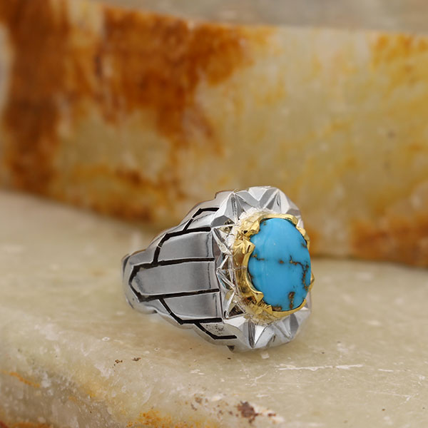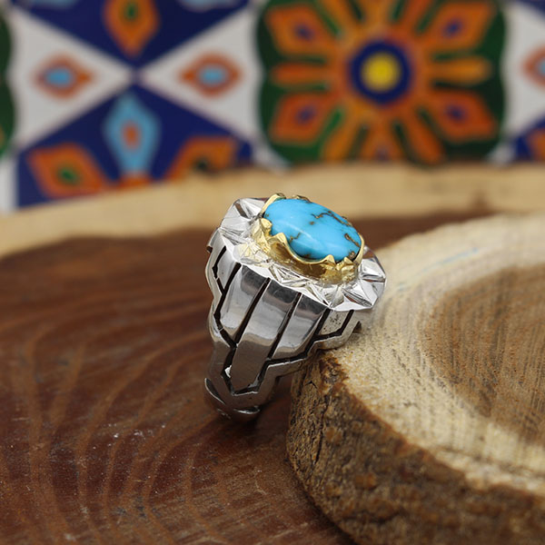 انگشتر فیروزه نیشابوری نقره مردانه دست ساز طرح هامون