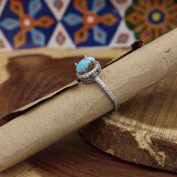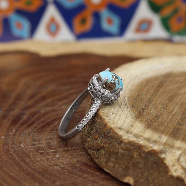 انگشتر فیروزه نیشابوری نقره زنانه طرح هیرا