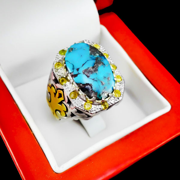 انگشتر فیروزه نیشابوری دست ساز نقره مردانه طرح فاخر هیتاسب