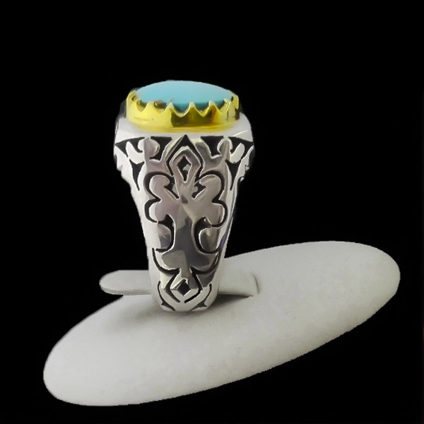 انگشتر نقره فیروزه نیشابوری فاخر دست ساز مردانه طرح هورمرد