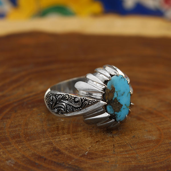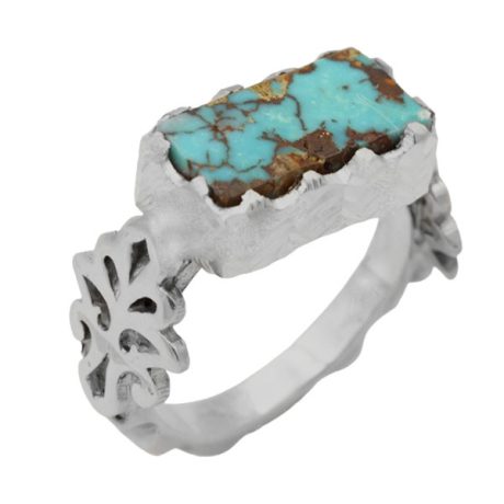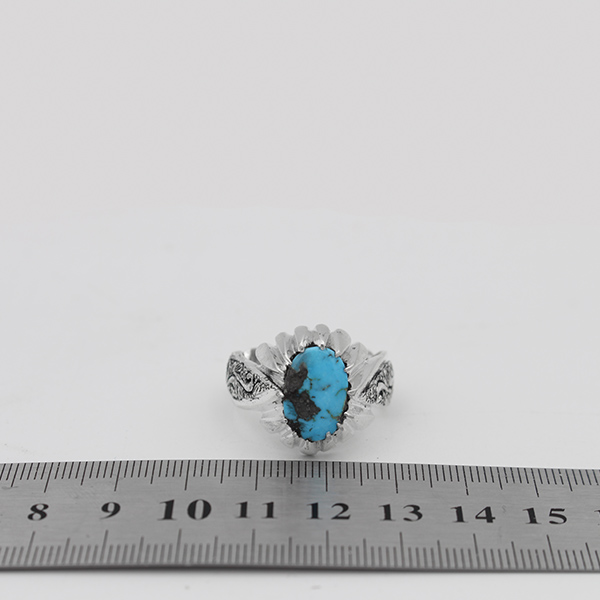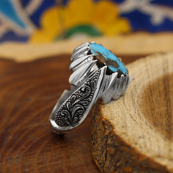 انگشتر فیروزه نیشابوری نقره مردانه دست ساز طرح کمال