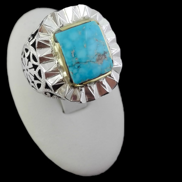 انگشتر نقره فیروزه نیشابوری فاخر دست ساز مردانه طرح کاووس