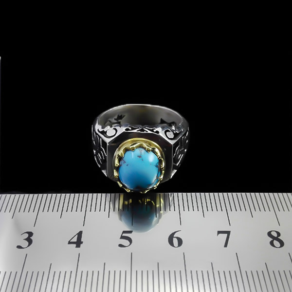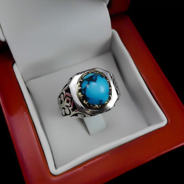 انگشتر نقره فیروزه نیشابوری فاخر دست ساز مردانه طرح کیومرث