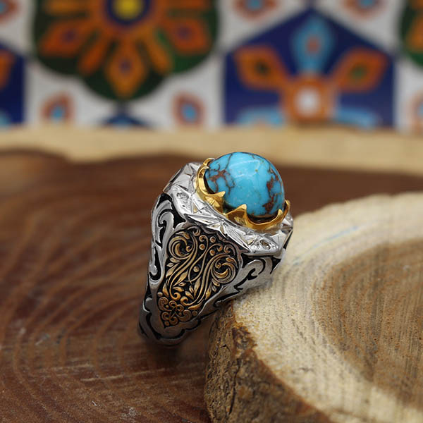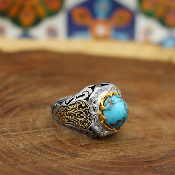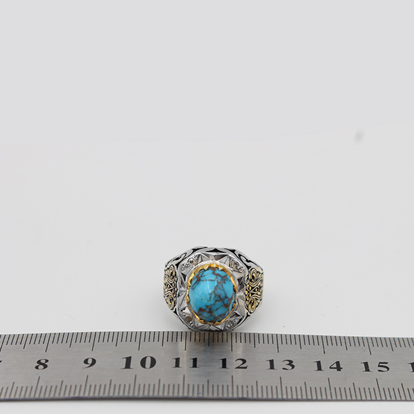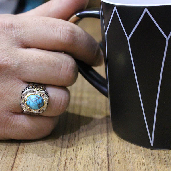 انگشتر فیروزه نیشابوری نقره دست ساز مردانه طرح فاخر مهام