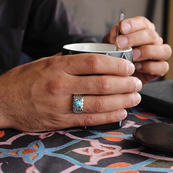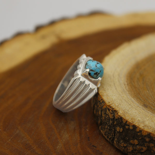 انگشتر فیروزه نیشابوری نقره مردانه دست ساز طرح محراب