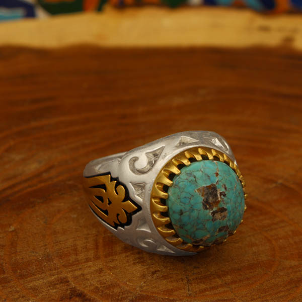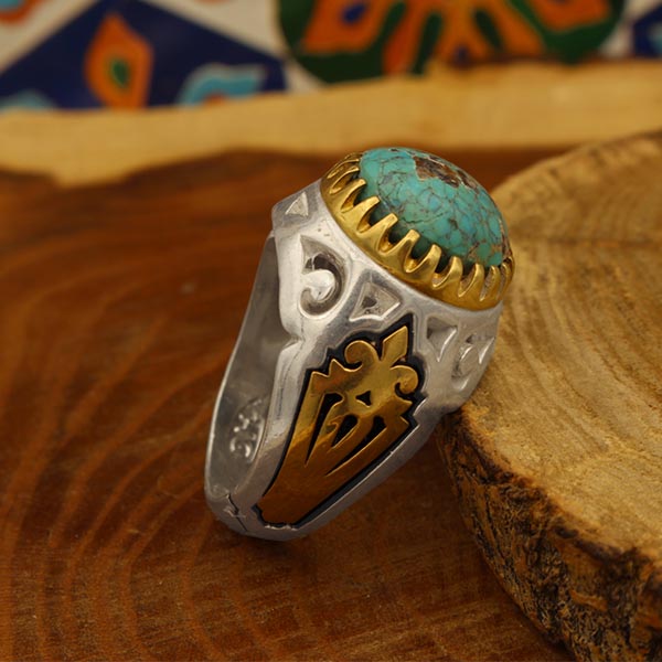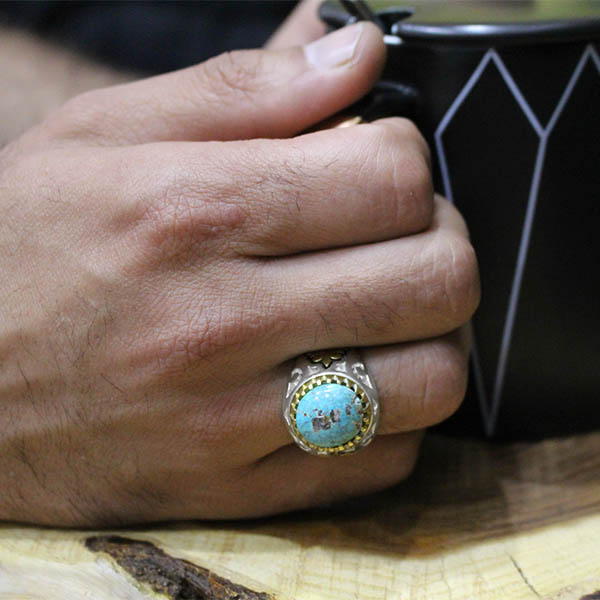 انگشتر فیروزه نیشابوری نقره مردانه طرح مناره