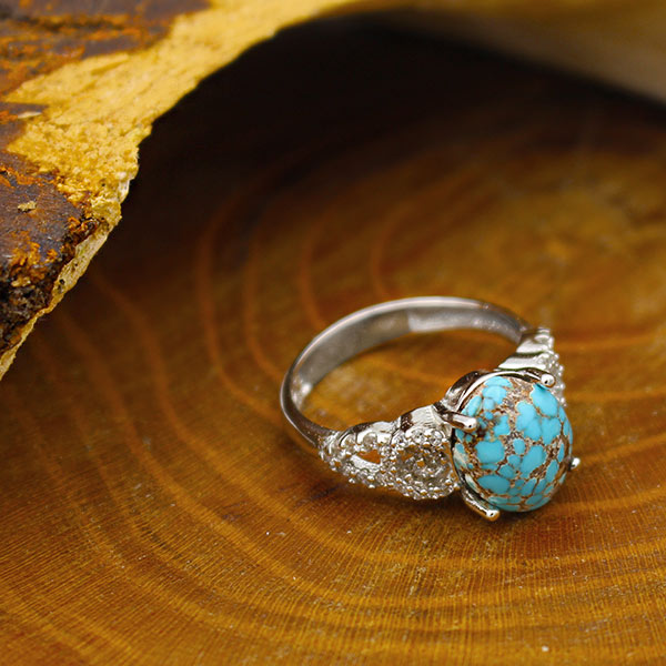 انگشتر فیروزه نیشابوری نقره زنانه طرح مونیکا