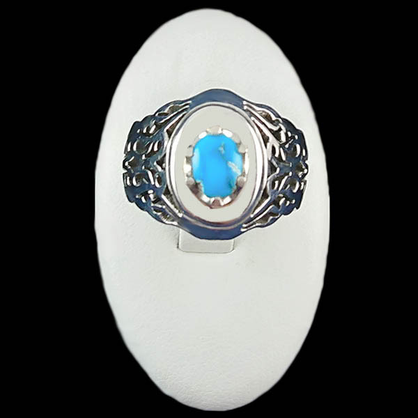انگشتر نقره دست ساز مردانه طرح پاکزاد با سنگ فیروزه نیشابوری