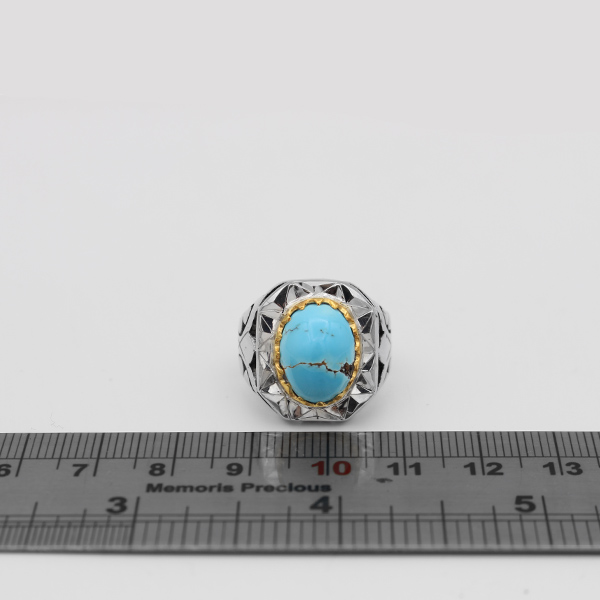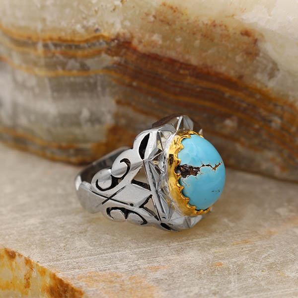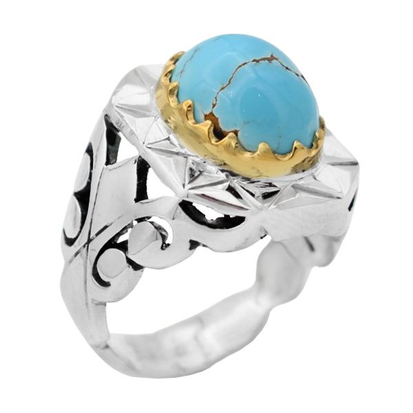 انگشتر فیروزه نیشابوری نقره مردانه دست ساز طرح پرویز