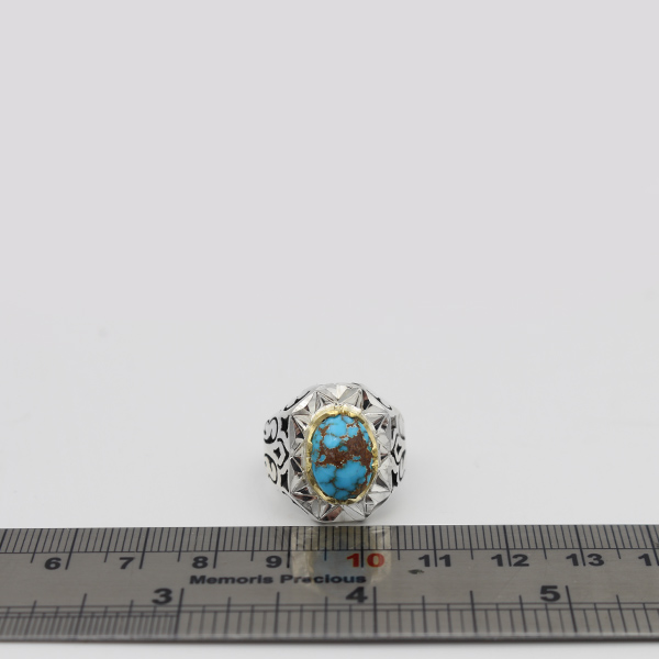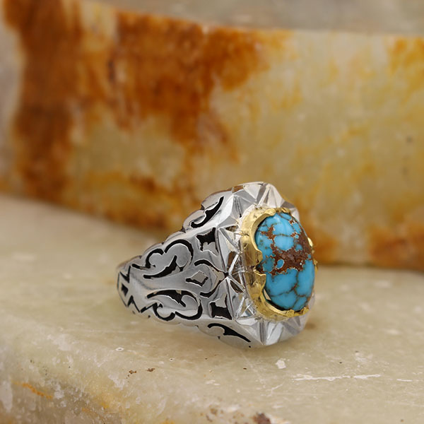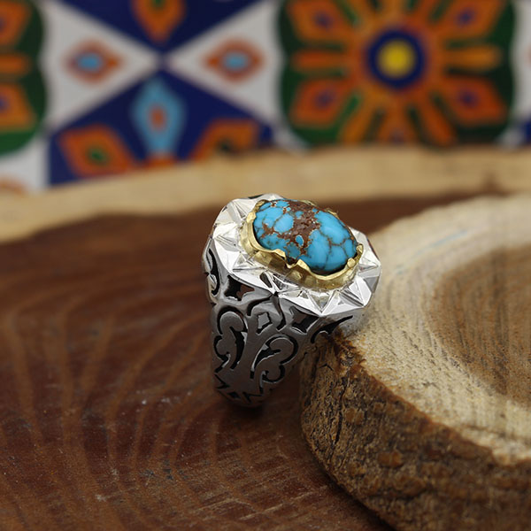 انگشتر فیروزه نیشابوری نقره مردانه دست ساز طرح پیروز
