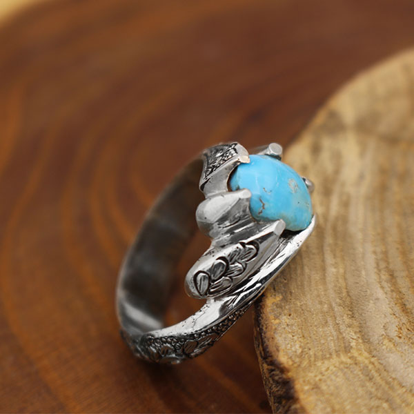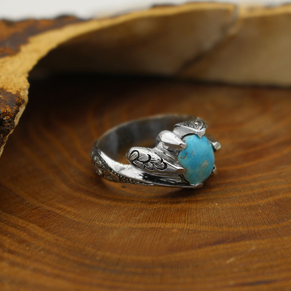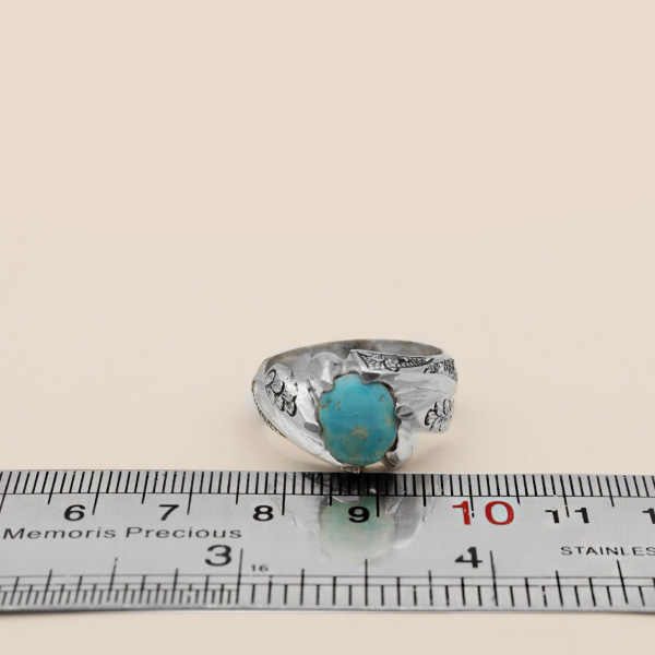انگشتر فیروزه نیشابوری نقره مردانه دست ساز طرح قلم زنی رهنما