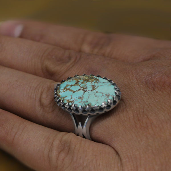 انگشتر فیروزه نیشابوری نقره مردانه طرح رزمیار