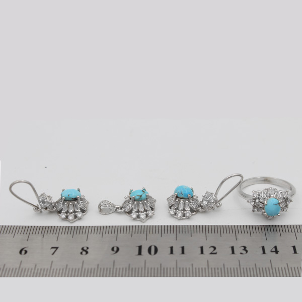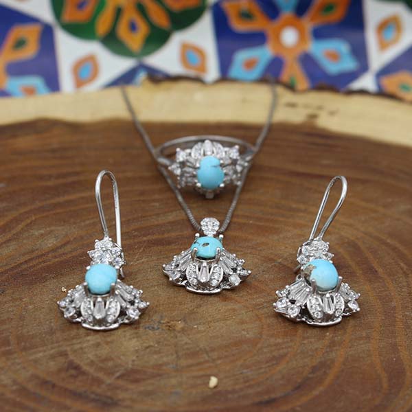 نیم ست فیروزه نیشابوری نقره زنانه طرح سمانه