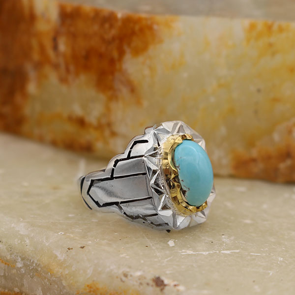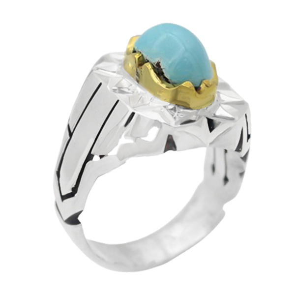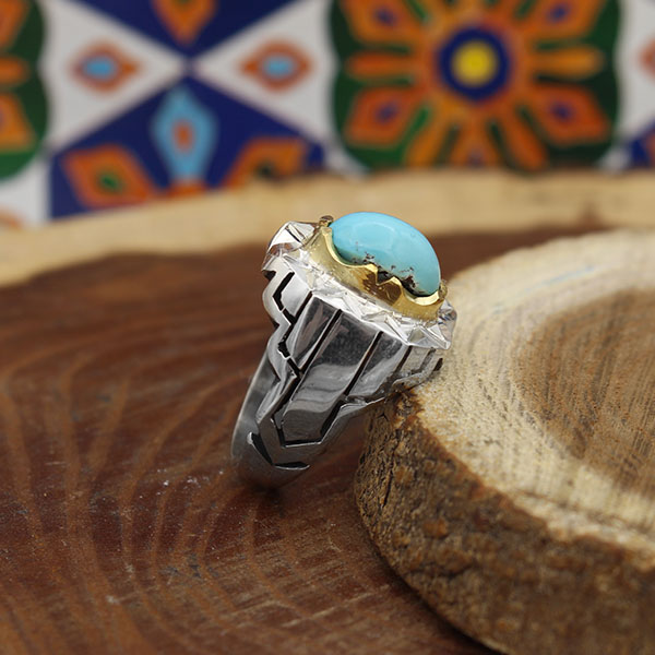 انگشتر فیروزه نیشابوری نقره مردانه دست ساز طرح شهرام