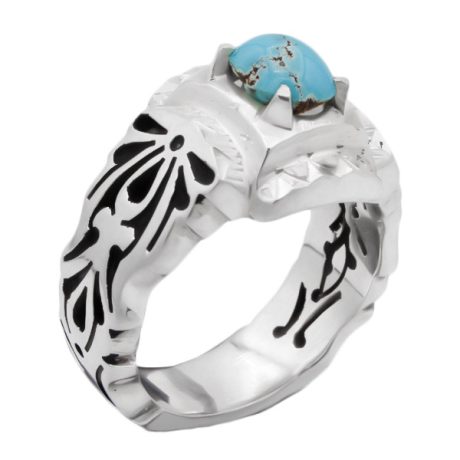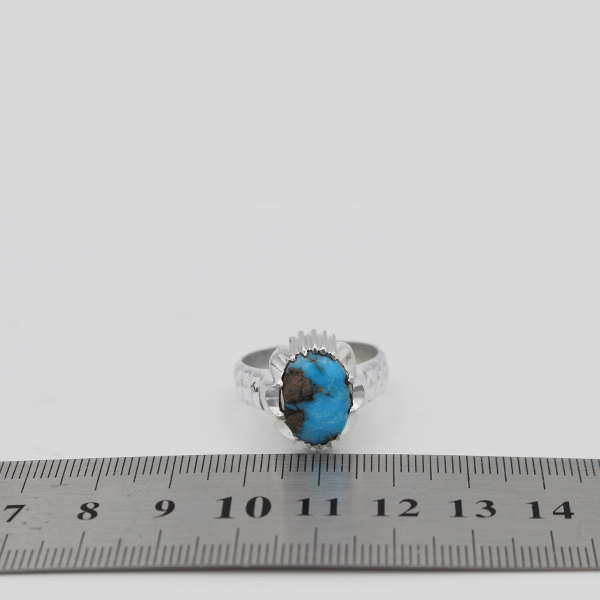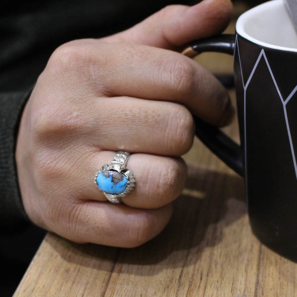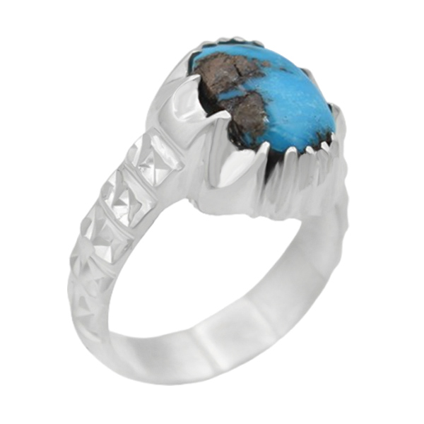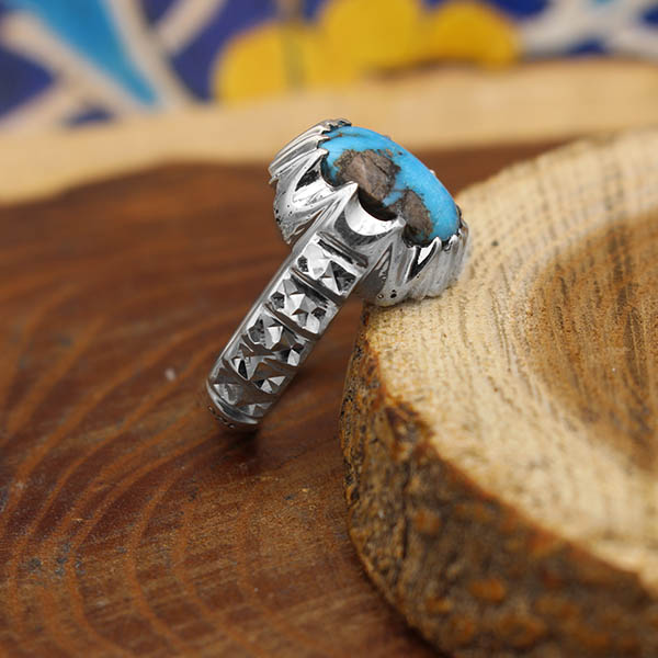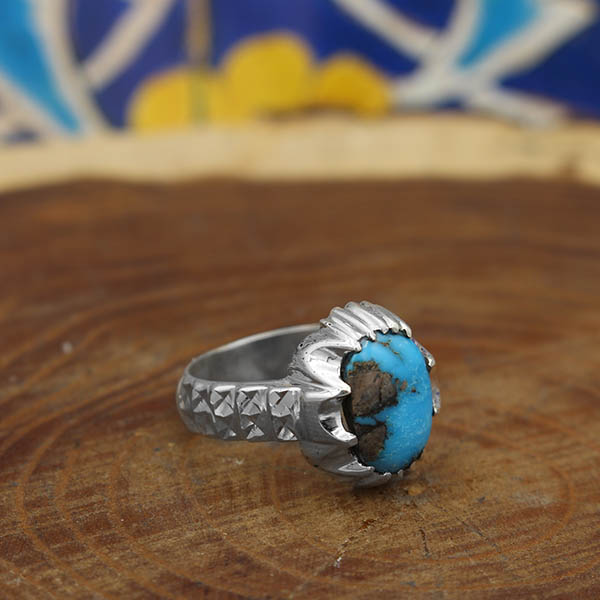 انگشتر فیروزه نیشابوری نقره مردانه دست ساز طرح آیینه کاری شیرزاد