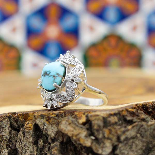 انگشتر فیروزه نیشابوری نقره زنانه طرح شکوهه