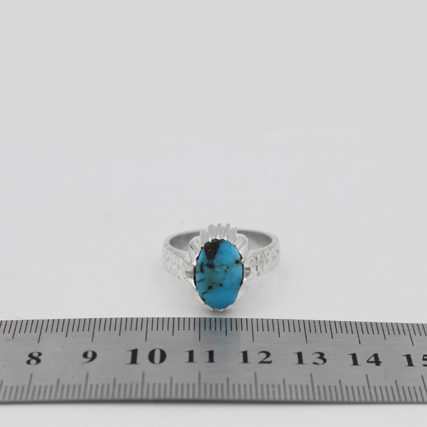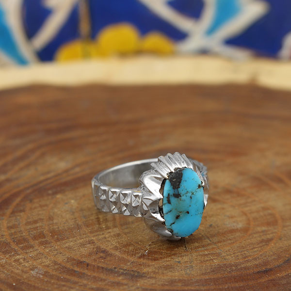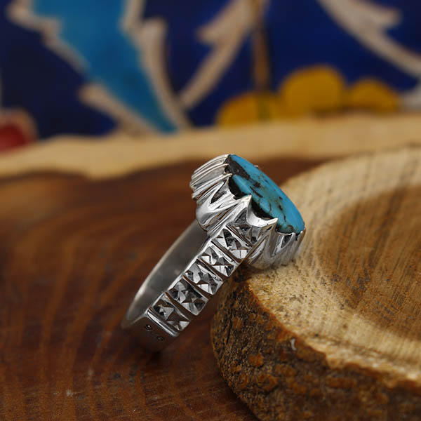 انگشتر فیروزه نیشابوری نقره مردانه دست ساز طرح سیروان