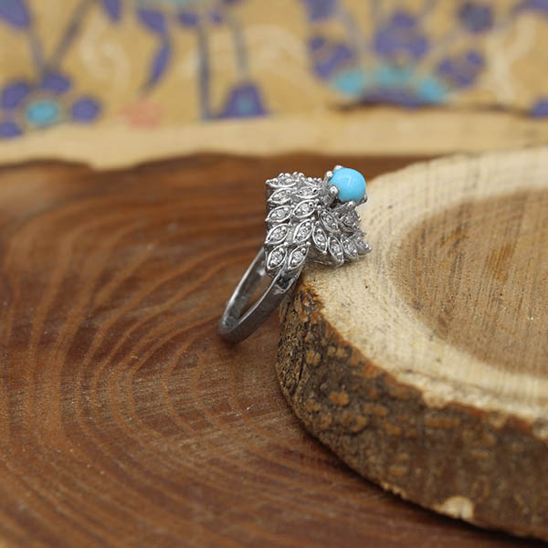 انگشتر فیروزه نیشابوری نقره زنانه طرح طاووس