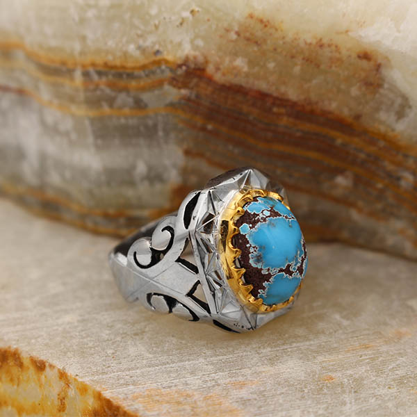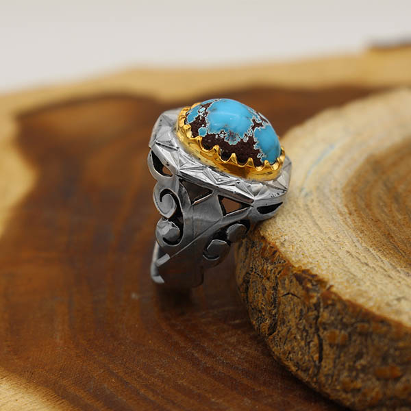 انگشتر فیروزه نیشابوری نقره مردانه دست ساز طرح وحید