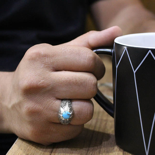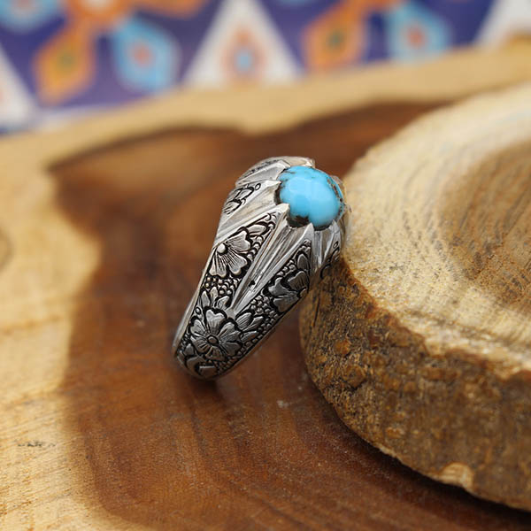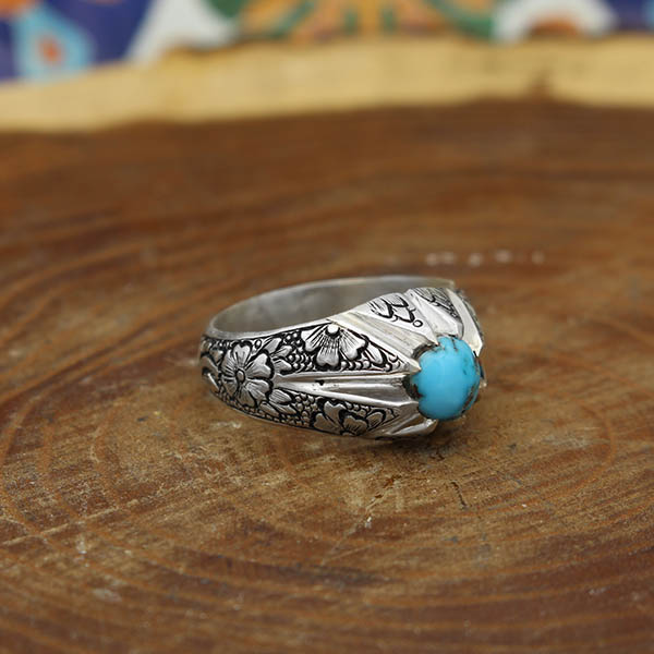 انگشتر فیروزه نیشابوری نقره مردانه دست ساز طرح یادگار