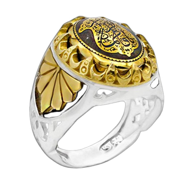 انگشتر حدید صینی نقره مردانه طرح دورطلایی یا فاطمه الزهرا (س)