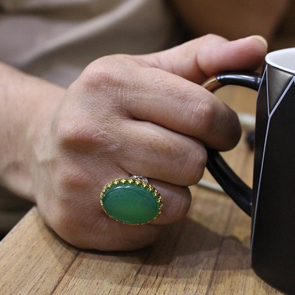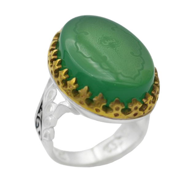 انگشتر عقیق سبز نقره مردانه طرح سوره یاسین
