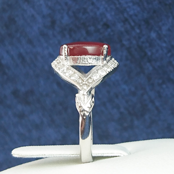 انگشتر طرح آرزو با قیمتی مناسب می تواند انتخابی زیبا و دخترانه باشد. نگین عقیق یمنی معدنی با رنگی سرخ و زیبا از دیگر مزیت های این انگشتر زیبا و ظریف می باشد. نگین سرخ و خوش رنگ انگشتر یمنی اصل می باشد. نگین های سوئیسی انگشتر بطور منظمی در اطراف انگشتر سوار شده است. جنس انگشتر از نقره با عیار ۹۲۵ به همراهی آبکاری رادیوم می باشد. آبکاری رادیوم از کدر شدن انگشتر در استفاده طولانی مدت جلوگیری می کند. انگشتر طرح آرزو قابلیت سایز شدن برای هر انگشتی را دارد.