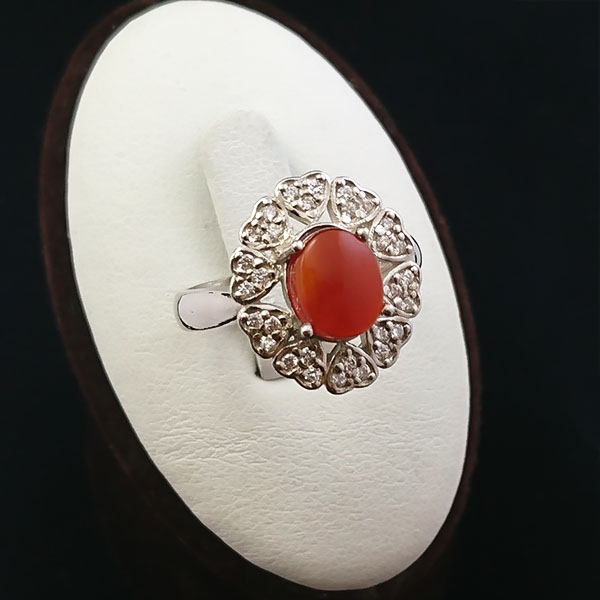 انگشتر نقره زنانه طرح تبسم با سنگ عقیق یمنی سرخ