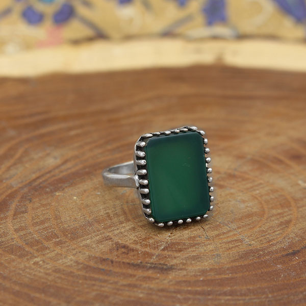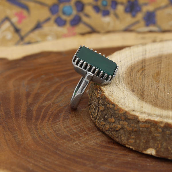 انگشتر عقیق سبز نقره مردانه طرح زهیر